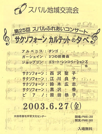 サクソフォーンを富岡和男、須川展也、大城正司の各氏に、またジャズを佐藤研司氏に、フルートを高市紀子師事。