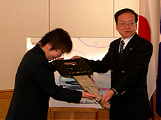 キー贈呈 富士重工鴨川所長より当選者へ