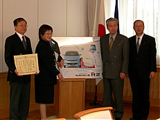 その中で、みごとSUBARUの軽自動車「R2」が当たったのは、高崎市にお住まいの丸木たま江さんで、2月8日に群馬県庁で贈呈式が行われました。