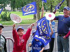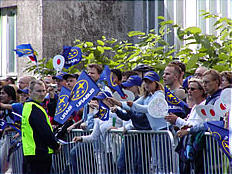 ゴールに向かって激走中! 沿道からも大きな声が 現地でもスバルは大人気!